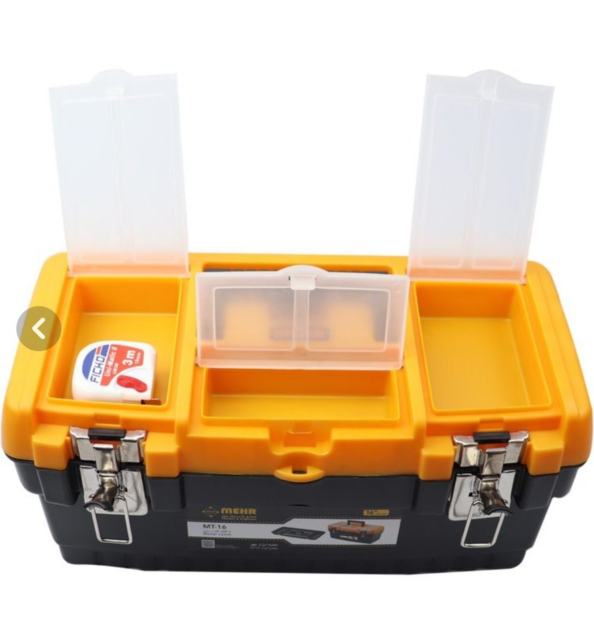 برند: مهر مدل: MT16 جنس بدنه: پلاستیکی سایز: 16 اینچ شامل: سه قسمت روی جعبه برای نگهداری پیچ و مهره دارای: یک سینی مجزا و سه محفظه روی درب و قفل فلزی با دوام بالا ویژگی ها: قابلیت تاشدن دسته روی درب، دسته مستحکم و سبک تعداد طبقات: 2 تعداد محفظه کالا: 5 عدد وزن: 600 گرم ابعاد: 41.3×21.2×18.6 سانتی متر